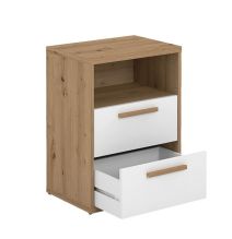 Mesita de Noche 2 cajones y 1 Estante, Mesilla de Noche,Color Blanco y roble, Medidas: 48 cm (Anc) x 33,6 cm (Fon) x 64 cm (Al)