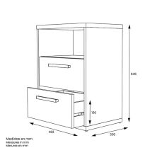 Equipada con dos cajones espaciosos y un práctico hueco abierto, te permite organizar con facilidad desde libros y dispositivos hasta pequeños accesorios, manteniendo todo a mano sin perder orden.