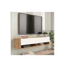Mueble TV de Pared Color Blanco-Roble 140x31.6x29.6 cm - 2 Puertas - Estilo...