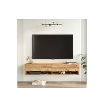 Mueble TV de Pared Color Roble 140x31.6x29.6 cm - 2 Puertas - Estilo Moderno...