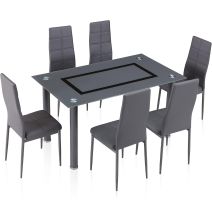 Juego de 4 Sillas Tapizadas en Símil Piel Gris Oscuro con Patas Cromadas, Asiento y Respaldo Ergonómicos- Medidas 43x63x97 cm
